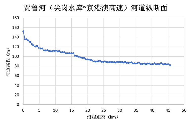 圖 2 賈魯河(尖崗水庫-京港澳高速)河道縱斷面沿線高程(m)